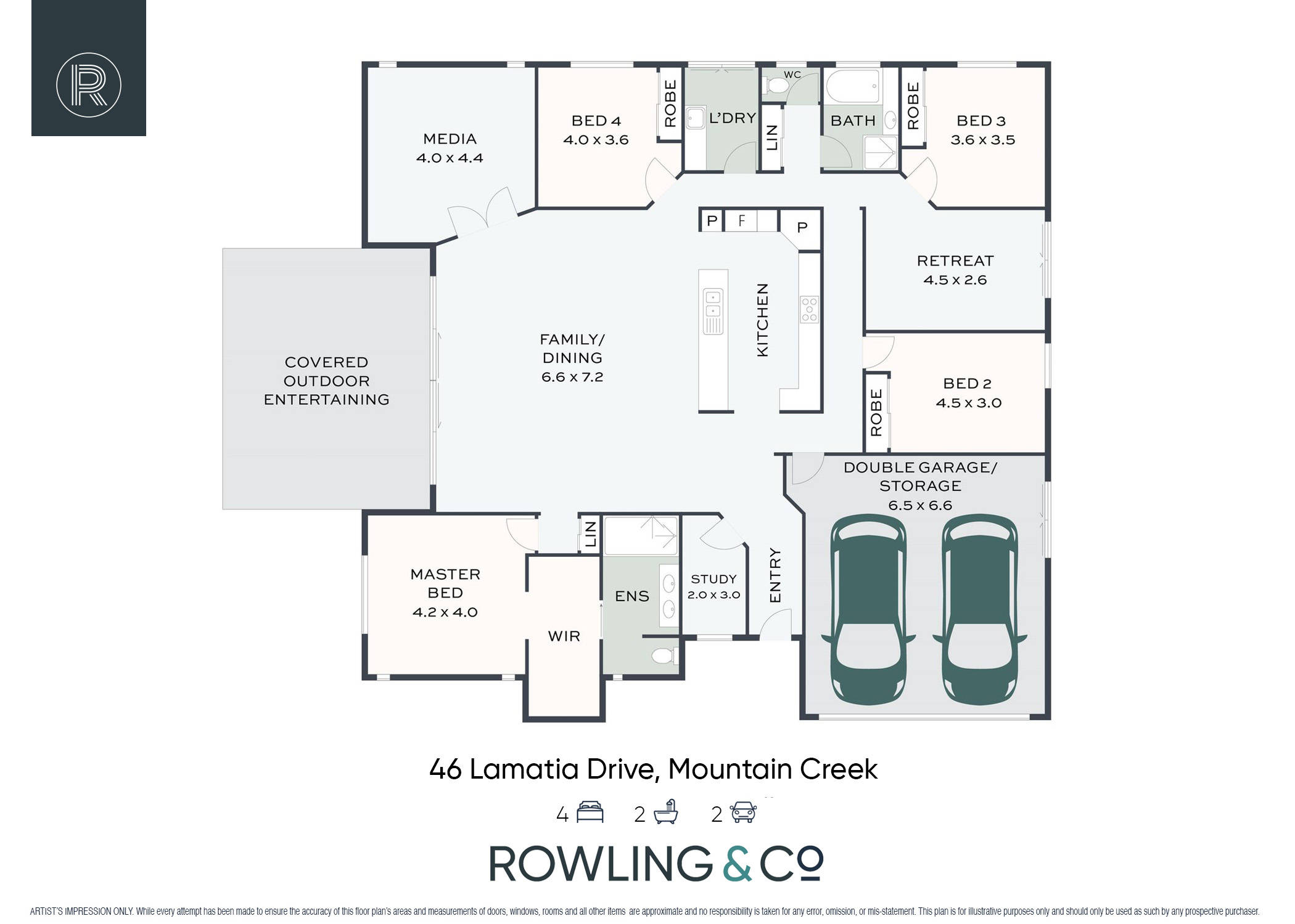 4 bedrooms plus media room, retreat & home office