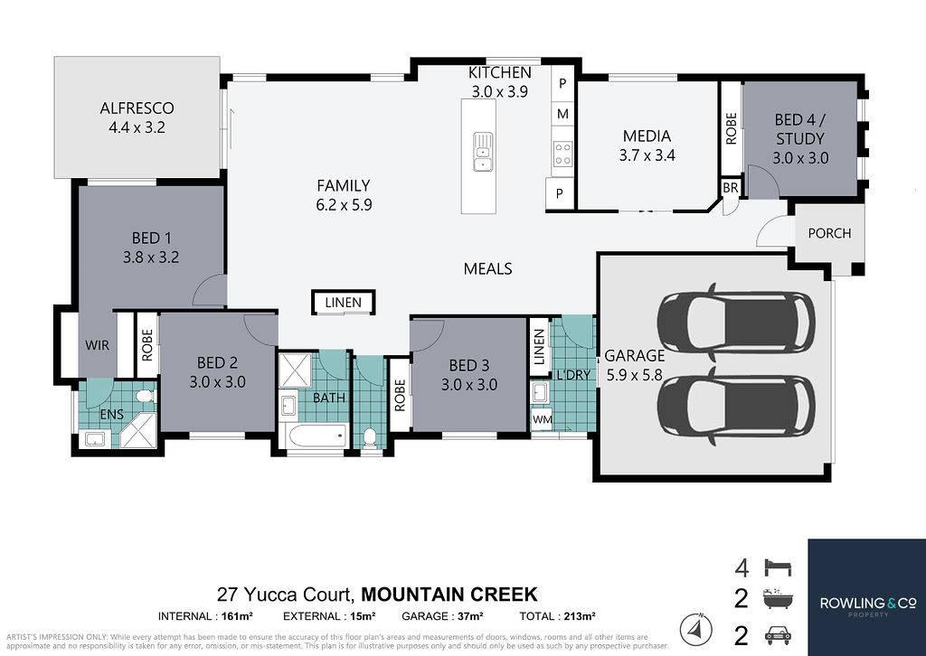 Featuring a single-story design, the layout encompasses a great family-friendly design with 4 bedrooms, multiple living areas and a central living and dining hub. This space also incorporates a well-equipped kitchen, an island bench, and a breakfast bar.