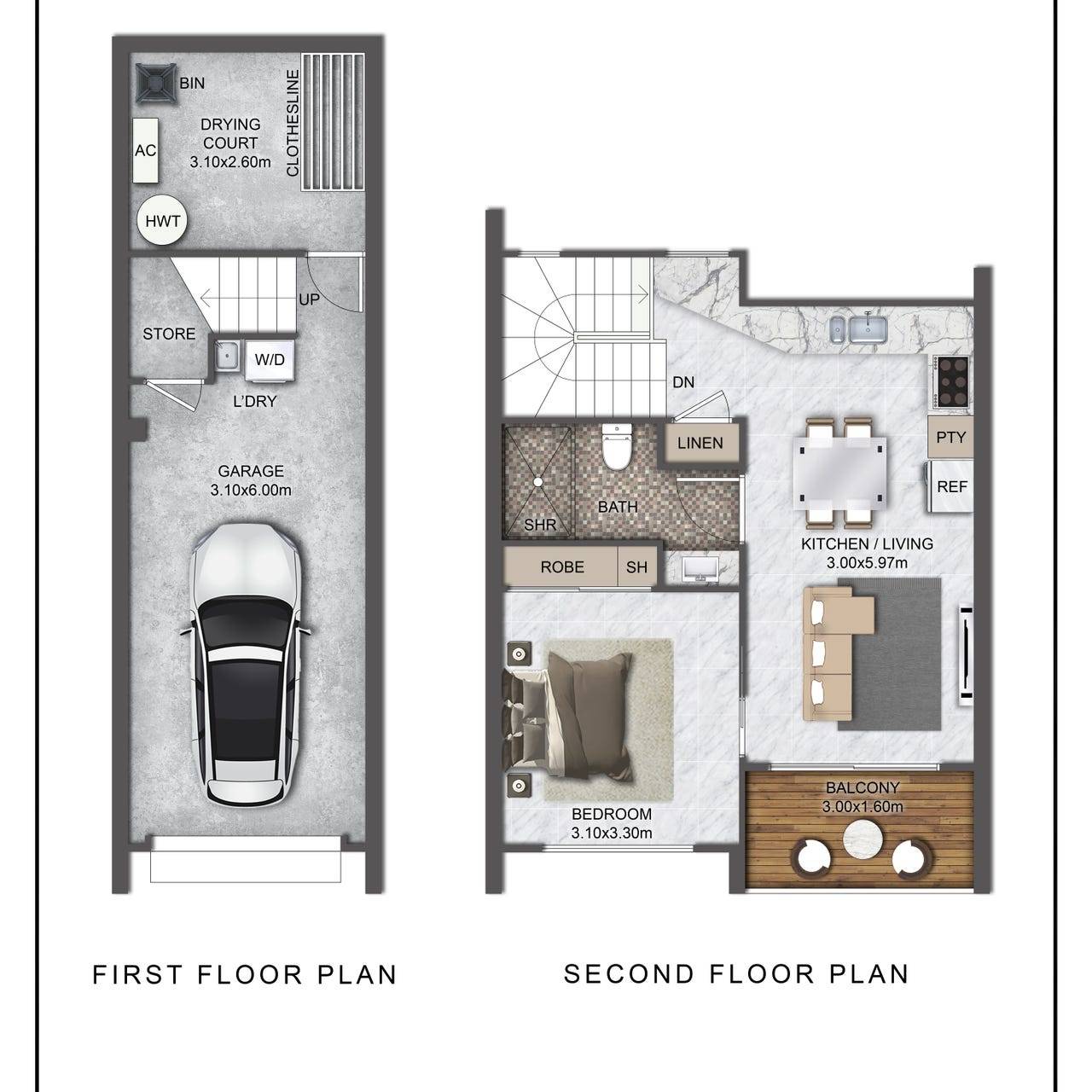 This spacious one-bedroom studio comes with a lock up garage, drying courtyard and private balcony off your bedroom all this in a quiet location with a park at your doorstep.