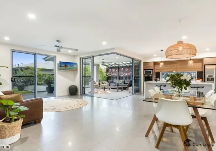 Bathed in natural light, the generous open-plan living and dining areas flow seamlessly to the covered alfresco zone, where a sparkling swimming pool creates a true centrepiece for relaxed coastal living. Whether entertaining guests, enjoying a quiet drink at sunset, or soaking up the Sunshine Coast lifestyle, this is a home designed to be enjoyed year-round.