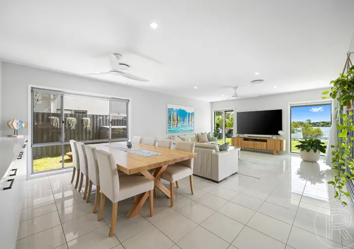 Positioned in a quiet enclave, this refined waterfront residence where considered design meets effortless coastal liveability. Bathed in natural light, the home unfolds with a calm, contemporary vibe - clean lines, generous proportions and seamless transitions between indoor and outdoor spaces.