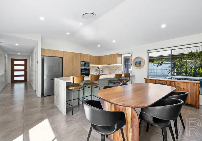 Filled with natural light, the home centers around a spacious open plan kitchen, living and dining area that flows seamlessly to the outdoor entertaining space. The renovated kitchen is both stylish and functional, featuring quality finishes, a central island breakfast bar and excellent storage, making it ideal for everyday living and entertaining.