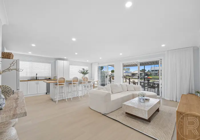 The single-level layout is comfortable and practical, with three well-proportioned bedrooms and a modern bathroom. The open-plan kitchen, living and dining area flows effortlessly, framed by glass sliding doors that capture calming canal views and connect to the newly renovated covered entertainer's deck.