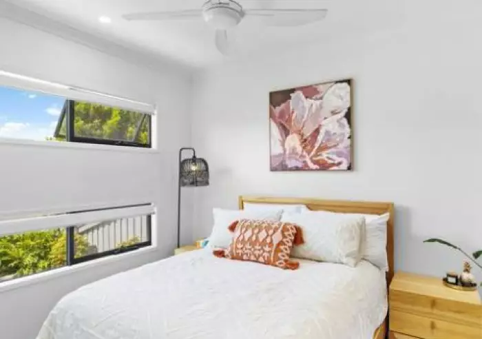 Sliding doors flow from the living area to the private undercover courtyard which is complete with timber deck and ceiling fan.
