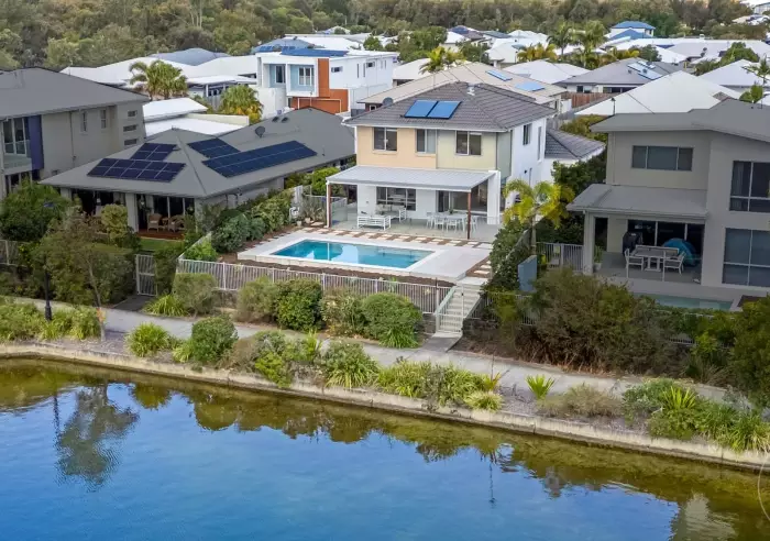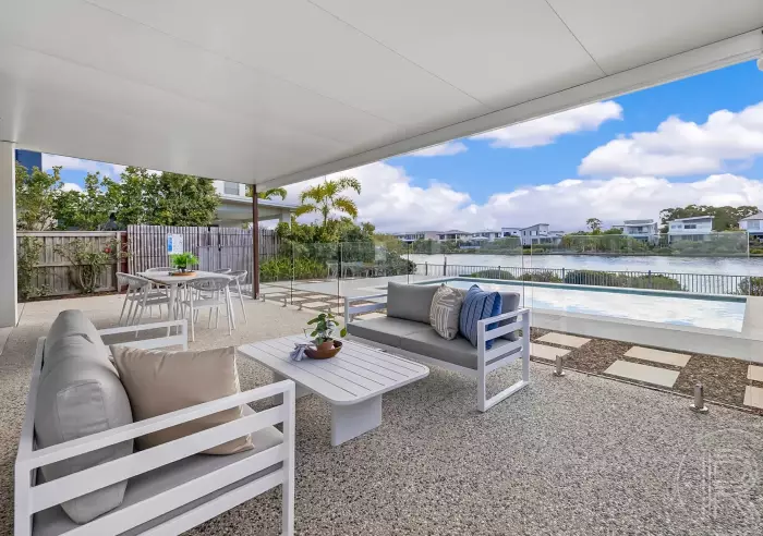 Set on a generous 525m² block with wide water frontage, this home has been crafted for families who value space, comfort, and connection to the outdoors. From its eye-catching contemporary façade to the wide entrance hallway and multiple living areas, every element of this property has been thoughtfully designed to accommodate relaxed family living and effortless entertaining.