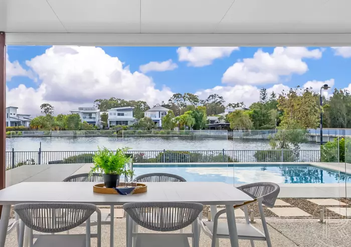 Set on a generous 525m² block with wide water frontage, this impressive double-storey home has been crafted for those who value space, comfort, and effortless connection to the outdoors. From its striking street presence to its wide entrance hallway and multiple living zones, every detail speaks to quality and sophistication.