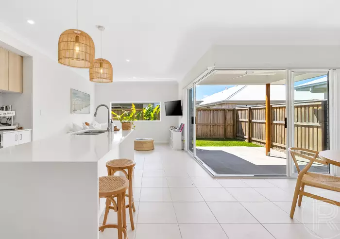 Step inside and discover a spacious open-plan kitchen, dining, and living area that forms the true heart of the home. Designed for effortless entertaining, this space flows seamlessly out to the covered outdoor living zone, perfect for summer barbecues or relaxed afternoons with friends.