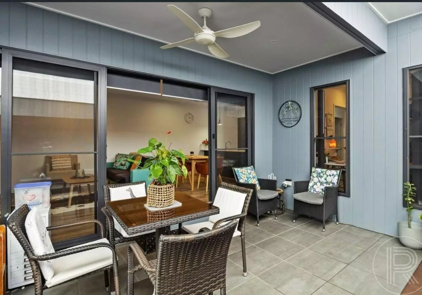 Sliding doors flow from the living area to the private undercover courtyard which is complete with timber deck and ceiling fan.