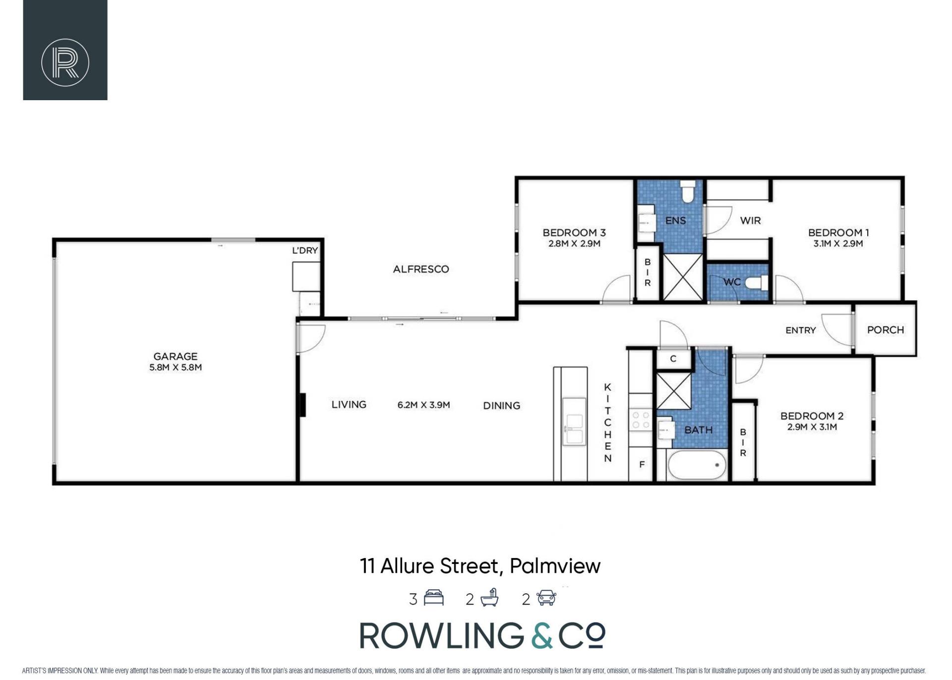 The three good sized bedrooms have built-in robes and ceiling fans and are carpeted for comfort. To complete the package there is a double garage which also houses the laundry.
