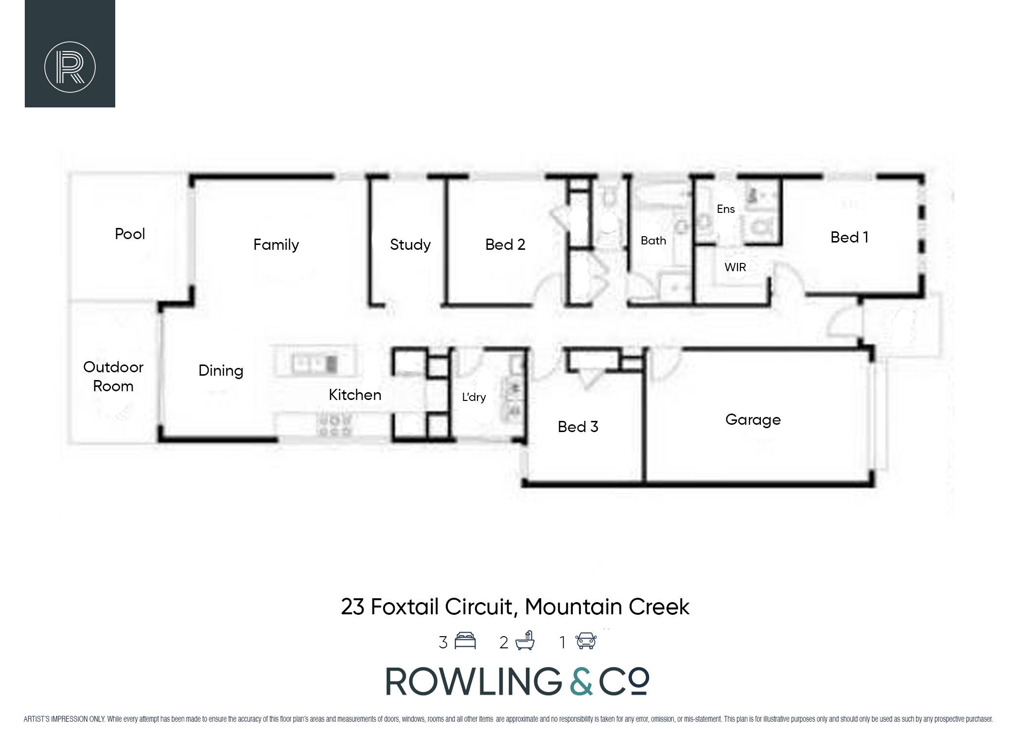 - 3 generously sized bedrooms with built-in robes, plus a purpose-built study