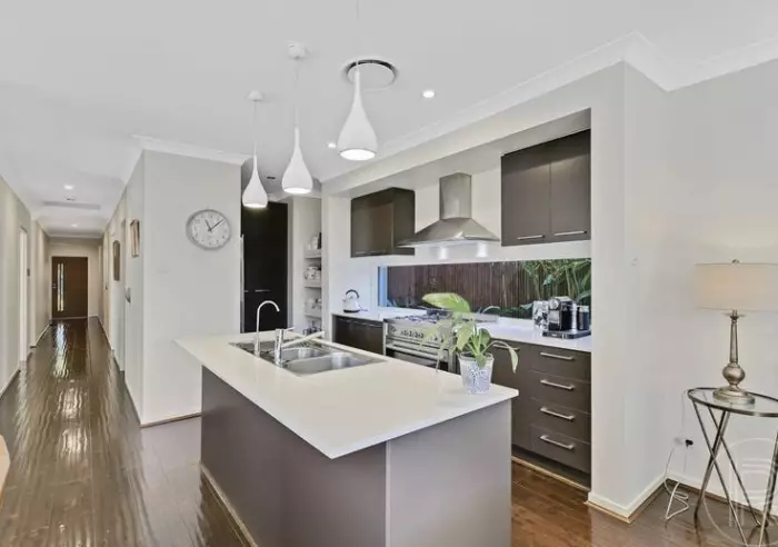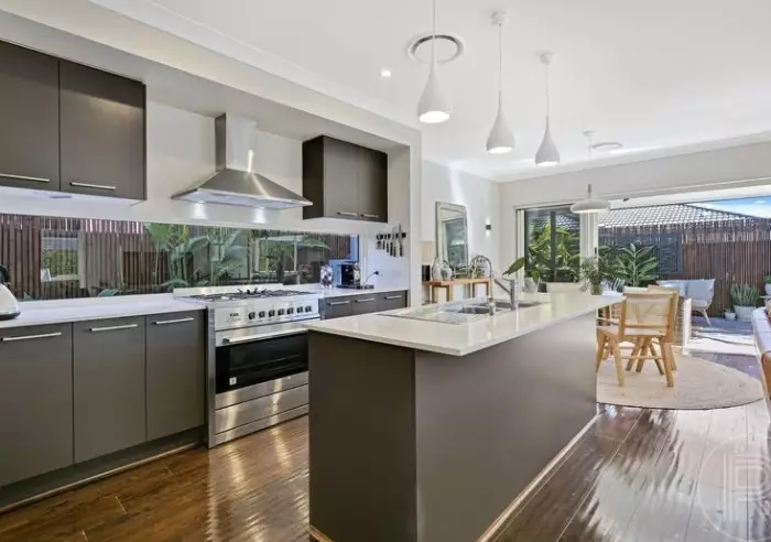 - Stunning galley-style kitchen with stone benchtops, a 900mm wide freestanding oven with gas cooktop, and a mini butler's pantry