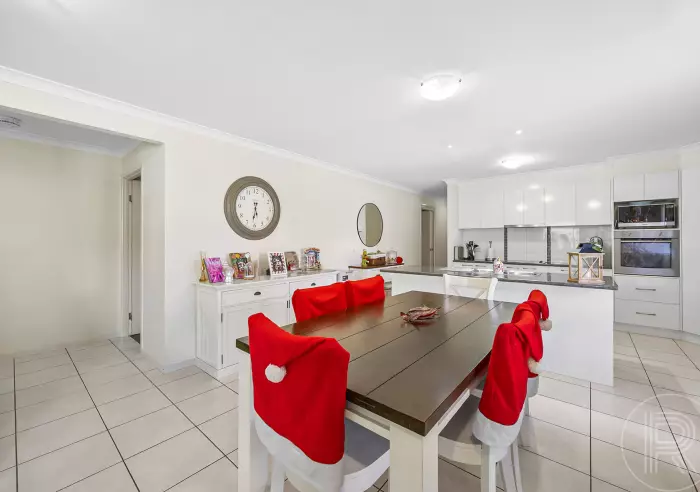 From the moment you arrive, the home feels welcoming. A traditional entryway leads to a spacious lounge room at the front of the home, creating an ideal retreat for parents or a cosy spot for movie nights. The central kitchen sits at the heart of the floorplan, complete with a breakfast island, plenty of storage and a clear view straight out to the dining, living and outdoor area - perfect for keeping an eye on the kids while preparing meals.