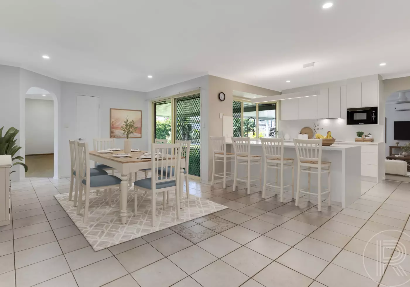 The home features well-proportioned rooms throughout, beginning with two separate living areas, including an impressively large family room. Centrally positioned between the living zones, the kitchen boasts loads of space and offering excellent connectivity and practicality for family living.
